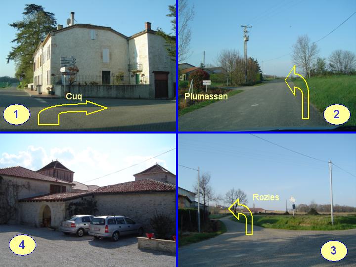 - From the center of Dunes, direction Sistels, passing the church, right direction Cuq and Astaffort.