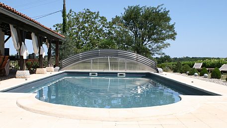 The swimming pool (10 x 5 m) with Roman steps has a depth of 90