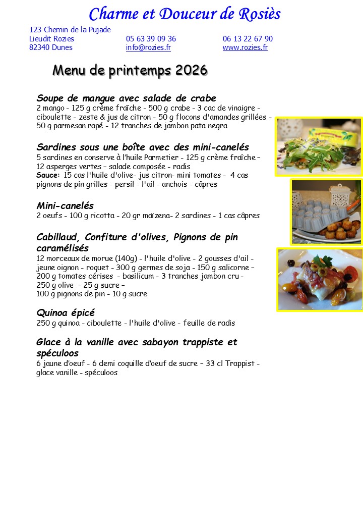 Inscription au préalable par tel. 05 63 39 09 36 ou par e-mail: info@rozies.fr