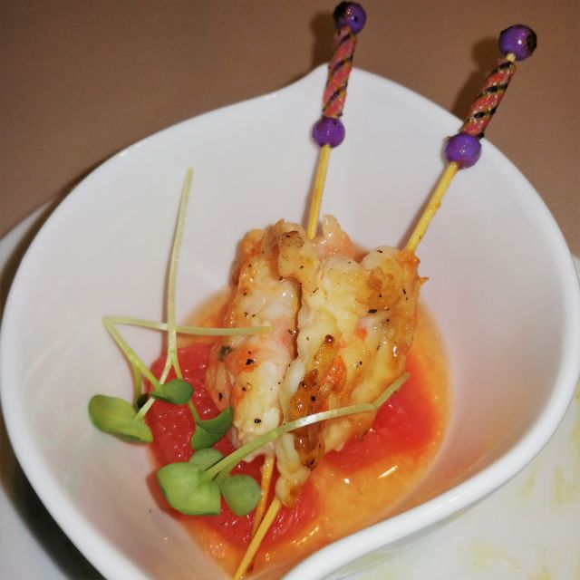 * Langoustines met esdoornsiroop en roze pompelmoes