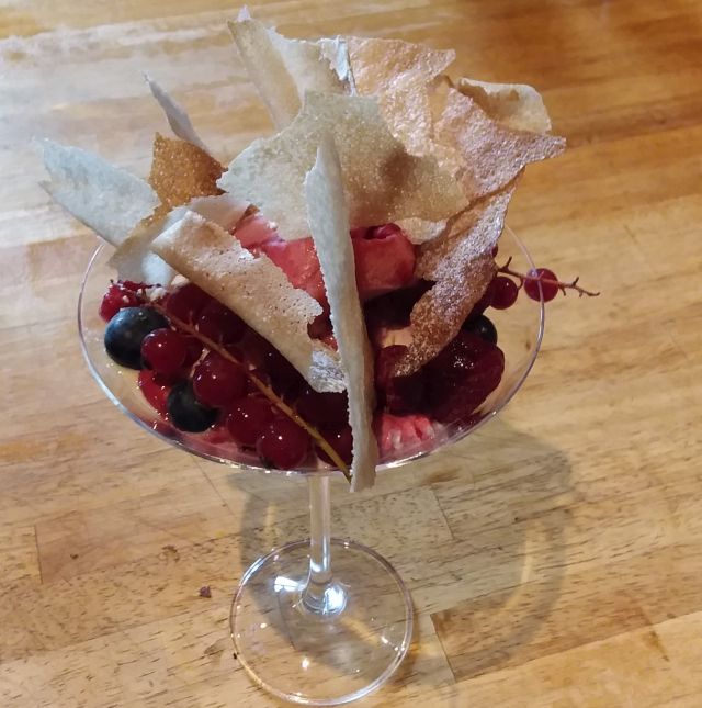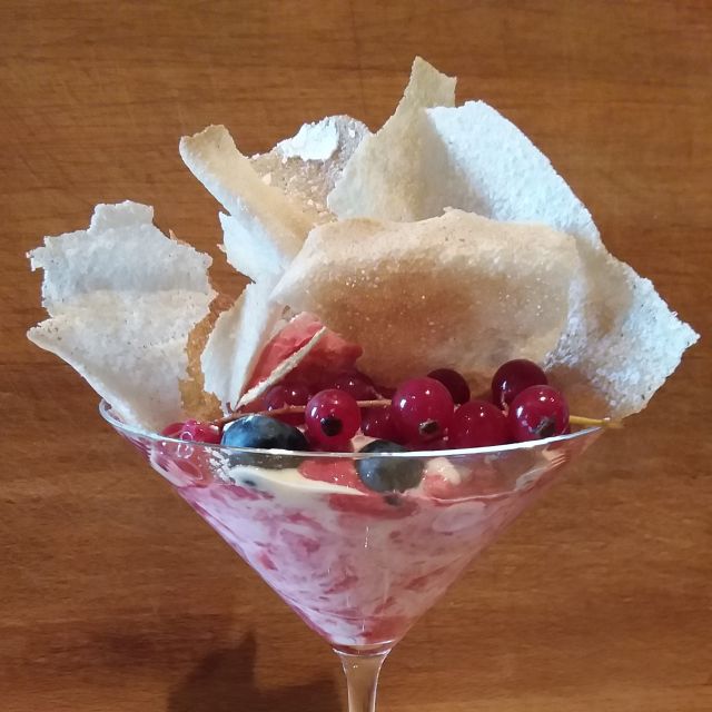 - Werk af met pistachenootjes, rode vruchten mix en krokante