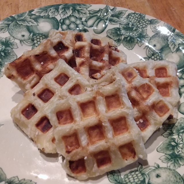 - Leg een vel bladerdeeg open en snij op maat van het wafelijzer.