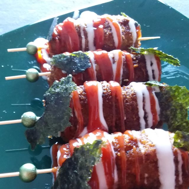 600 g kalfsgehakt - 5 lpl room - 150 g paneermeel - 1 ei - sojasaus