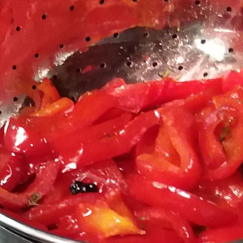 - Haal de paprika uit de olie en kook de volgende helft van de