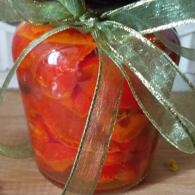 - Vul de potjes met paprika, overgiet met kokende azijnolie, sluit