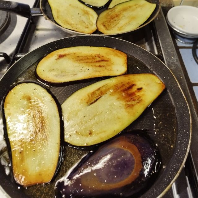 Haal de paprika uit de olie en kook de volgende helft
