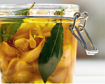 0,5 l olijfolie - 200 g verse look - tijm - laurier
